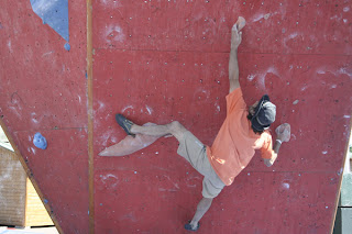 C'est parti : les 60 seniors attaquent les premiers blocs à 10h30. Ils ont 6 heures pour se départager sur les 35 blocs ouverts. Christopher anime la journée avec toujours autant d'énergie, et ce petit grain de folie bien à lui !